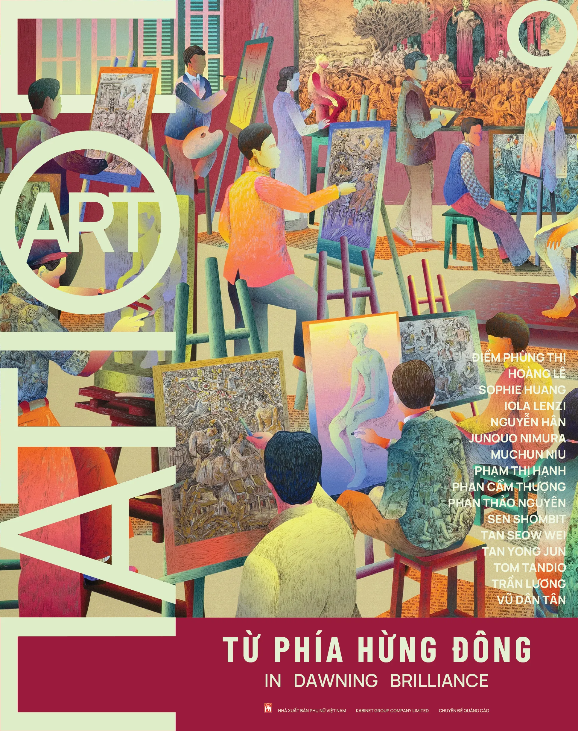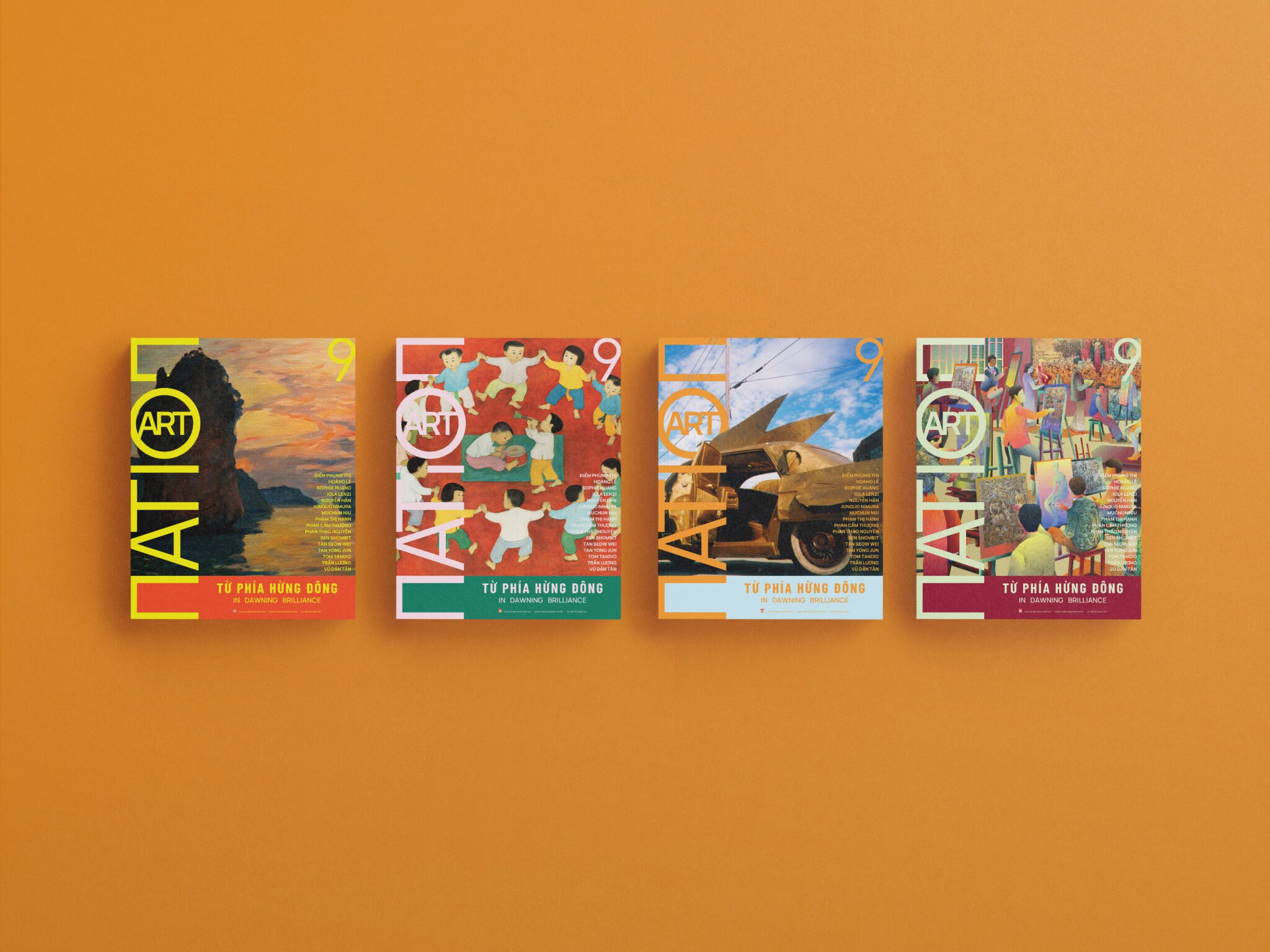 Ấn phẩm Art Nation bạn cầm trên tay sẽ được đánh số #9 như một cam kết cho sự nhất quán về quy chuẩn chất lượng và hình thức. Với chủ đề “Từ phía hừng Đông”, mạch nội dung lần này sẽ mở rộng ra khu vực để luận về những tuyến nhìn liên dân tộc và liên lãnh thổ ở Á Đông, từ đó nhận ra rằng trong nghệ thuật, chúng ta có nhiều điểm chung hơn vốn được nhìn nhận. Sợi chỉ đỏ này trải từ những phát hiện về mỹ thuật Đông Dương của GS Junquo Nimura (Nhật) cho đến tư tưởng của Khiếu Đào Triện Khắc Thư Hoạ Hội (Singapore), từ diễn biến thị trường mới nhất tại Art Jakarta (Indonesia) tới chiến lược sưu tập của Vietnam Art Collection (Việt Nam, Hoa Kỳ & Trung Quốc). Đó cũng là mẫu số chung trong công việc giám tuyển nghệ thuật cung đình Huế của TS Caroline Herbelin (Pháp), phân tích về hình ảnh Đại Việt trong “Trúc Lâm đại sỹ xuất sơn đồ” của nghiên cứu sinh Hà My (Trung Quốc), hay thực hành ý niệm bền bỉ của nghệ sỹ đương đại tiên phong Trần Lương (Việt Nam).
